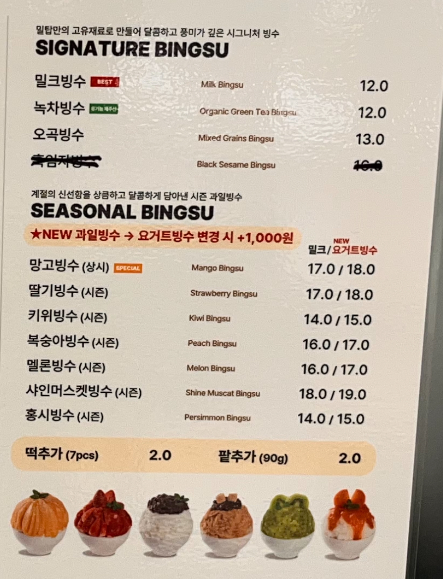 밀탑의 시그니처 빙수는 밀크 빙수인데